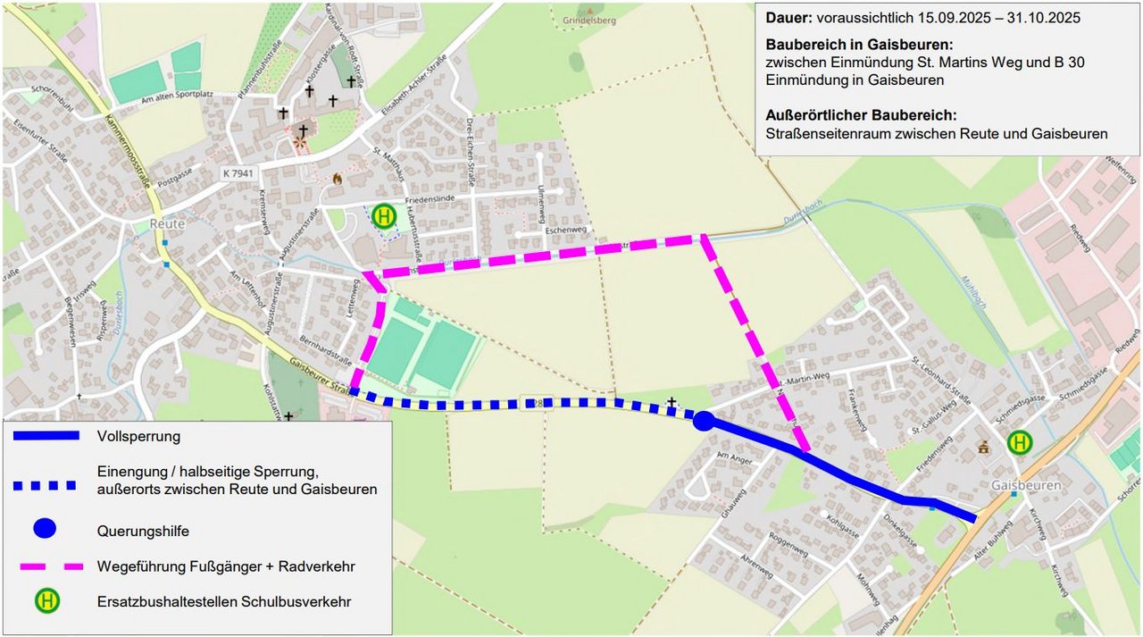 Liebe Sternen-Gäste, wie Sie aus der Presse und von den Behörden erfahren haben, wird ab dem Mittwoch, 21.05., die Ortsdurchfahrt Reute für längere Zeit gesperrt sein. Grund ist eine größere Brückensanierung sowie viele weitere Maßnahmen entlang der Gaisbeurer Straße sowie der L 285 Reute-Gaisbeuren. Die aktuellsten Informationen zur Baumaßnahme erhalten Sie hier:
