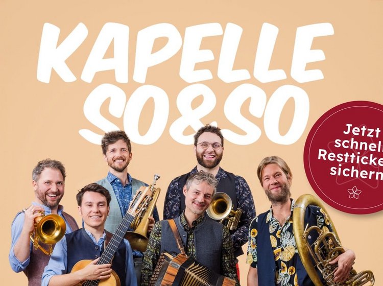 Tanzlmusi, Hip Hop, Singa, Beatbox? Ein Ausflug in die Klassik? Was ist musikalisch noch alles möglich? Fragen denen sich die sechs der Kapelle So&So immer stellen - kreative Weiterentwicklung stets ein Thema. Aufgreifen von Bestehendem, ohne das es "das Moderne" und neue Stilistiken nicht geben würde. Feuer entfachen, ja nicht die Asche anbeten. In Bewegung bleiben, und die Musiklatte nochmal ein bisschen höher legen. Selbstverständlich feurig genreübergreifend. Sonst werd`s dene langweilig - sie wollen es ständig wissen. Also sie. Und Sie hoffentlich auch.